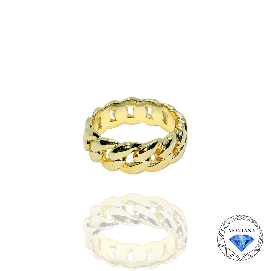 This ring is like the cuban chain. It has a clean and shiney gold color and is 18kt gold plating. Follow the tips bellow to keep your jewelry nice and shiney.