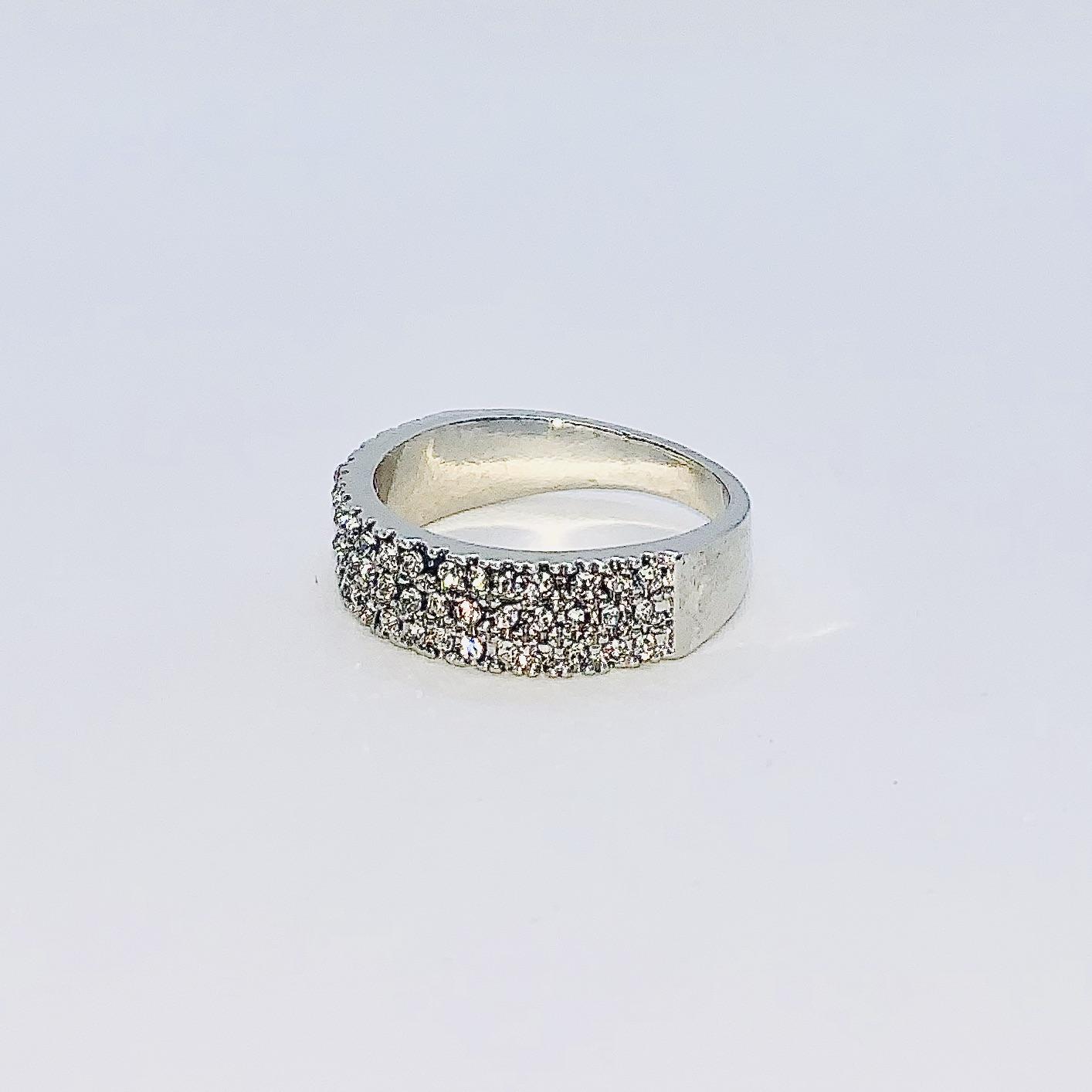 This ring has three rows completely filled with small zirconia stones. The material of the ring is 925 Silver. Follow the tips bellow to keep your jewelry nice and shiney